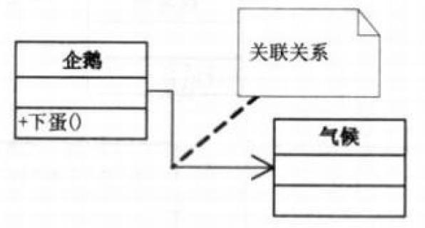 当一个类“知道”,或者说“了解”另一个类时,用关联关系。关联关系用实线箭头表示。