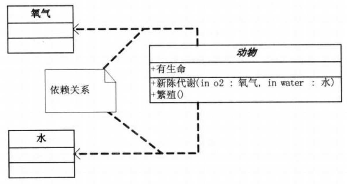 该矩形框表示一个类,第一层为类的名称,若是抽象类则用斜体表示;第二层是类具有的字段和属性;第三层为类的方法。’+’表示public,’-‘表示private,’#’表示protected